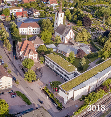 1986 verabschiedete der Gemeinderat einen neuen Flächennutzungsplan, der die Grundlage für die Ortskernsanierung und den Erwerb der entsprechenden Grundstücke zum Neubau eines Verwaltungszentrums in den Jahren 1986 bis 1991 legte. Das Haus Martin mit der Paracelsus-Apotheke sowie die Anwesen Bender und Schwarz mussten der Planung des Neuen Rathauses weichen.
