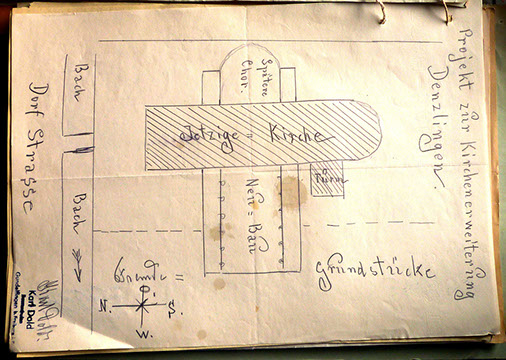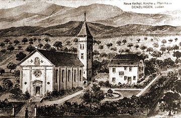 Abb. 1) und der Kirchenraum in der Hinterhofstraße zu klein wurde, entstand der Wunsch nach einer größeren Kirche. Pfarrer Keller aus Buchholz, der die Denzlinger Katholiken damals betreute, gelang es mit Unterstützung des Freiburger Weihbischofs Dr. Knecht, einen Bauplatz an der Hauptstraße zu erwerben.