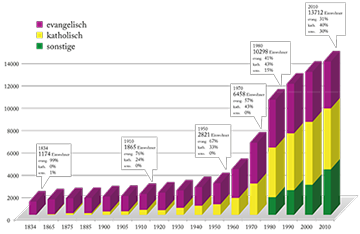 Abb. 1: Anteil der Konfessionen in Denzlingen 1834-2010.