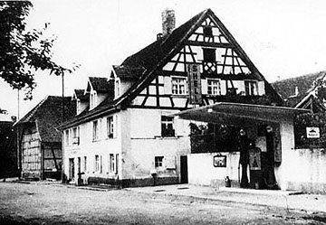 Abb. 3: Das alte Rathaus im Unterdorf (Foto aus den 1930er Jahren); im Hintergrund der inzwischen abgerissene Farrenstall.
