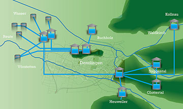 Die Stadt Freiburg besaß bereits seit 1872-76 und Emmendingen seit 1892 eine zentrale Wasserleitung. Im Vergleich zu den umliegenden Gemeinden kam Denzlingen im Jahr 1911 relativ früh zu einer kommunalen Wasserversorgung. Denn hier hatte man sich schon seit einiger Zeit mit dem Gedanken an den Bau einer eigenen Wasserleitung beschäftigt.