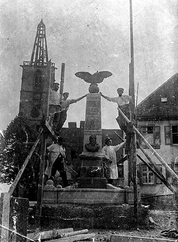 Abb. 2: Bau des Brunnen- und Kriegerdenkmals im Jahre 1913.